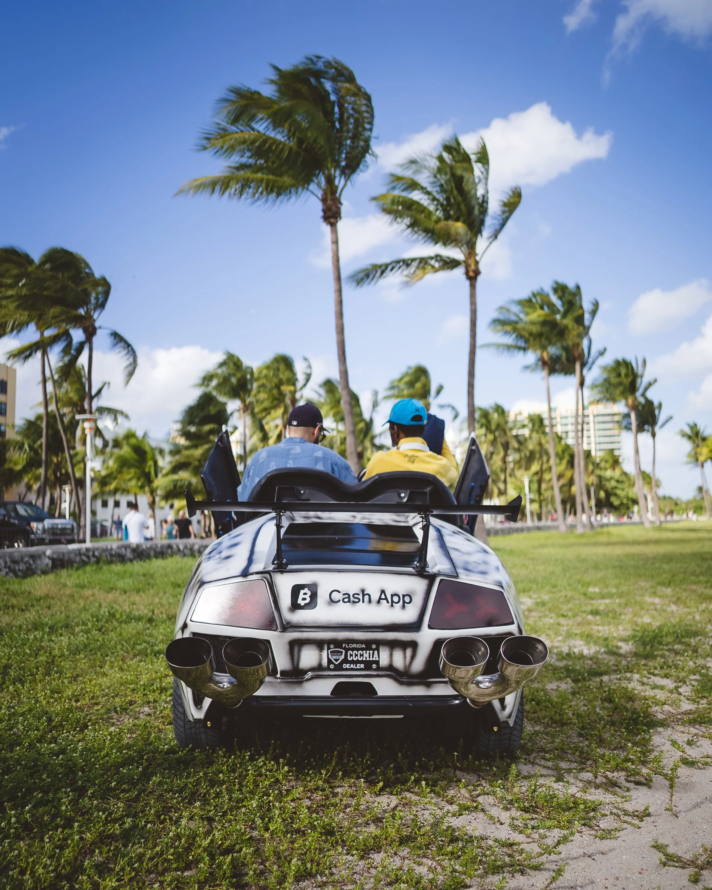Talent like Tiger Hood, New York Nico, and Cass Holland were present to engage with street golf participants, drive the creatively reimagined golf carts, play golf with Art Basel attendees, create organic content, and give away free bitcoin to passersby.